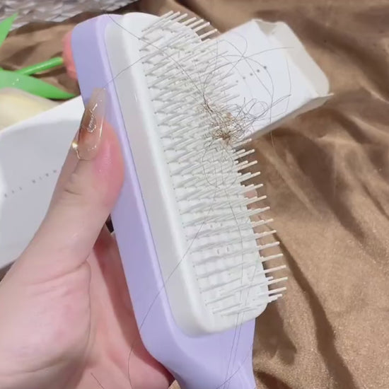 🌀Gira el mango para soltar el cabello y, si hace falta, aclara bajo agua tibia.
